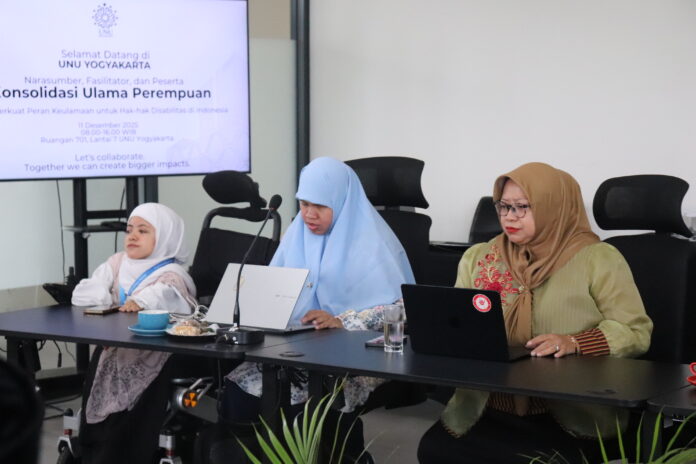 Yogyakarta — “Nothing about us without us.” Kalimat ini bergema kuat dalam Konsolidasi Ulama Perempuan Indonesia yang membahas penguatan peran keulamaan untuk hak-hak disabilitas. Bertempat di UNU Yogyakarta, forum ini menegaskan bahwa perjuangan keadilan bagi penyandang disabilitas tidak cukup berhenti pada regulasi negara, tetapi harus menyentuh akar kultural dan keagamaan melalui fikih yang hidup dan berpihak.